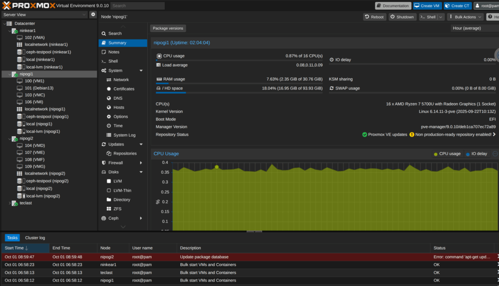 Mise en place réussie d’un laboratoire Proxmox avec 4 nœuds en environnement hyperconvergé grâce à Ceph.