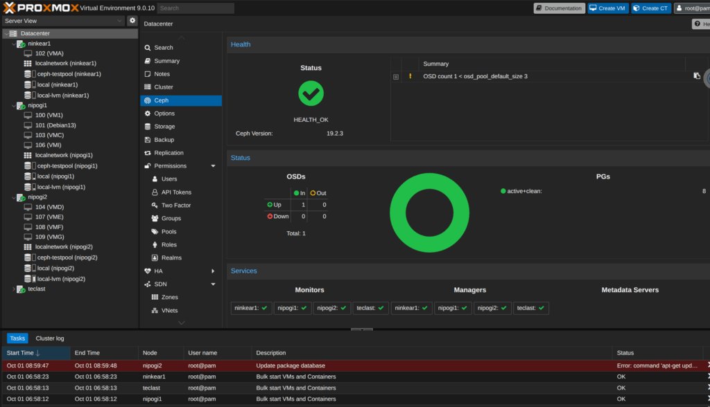 Successfully set up a Proxmox lab with 4 nodes in a hyper-converged environment powered by Ceph.